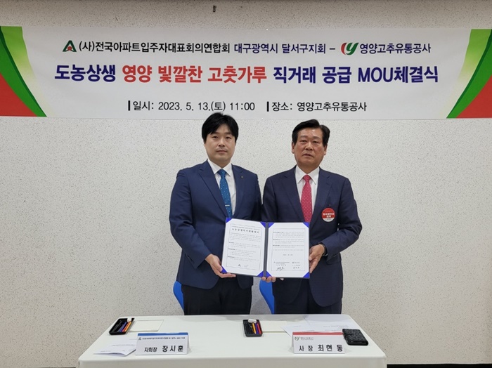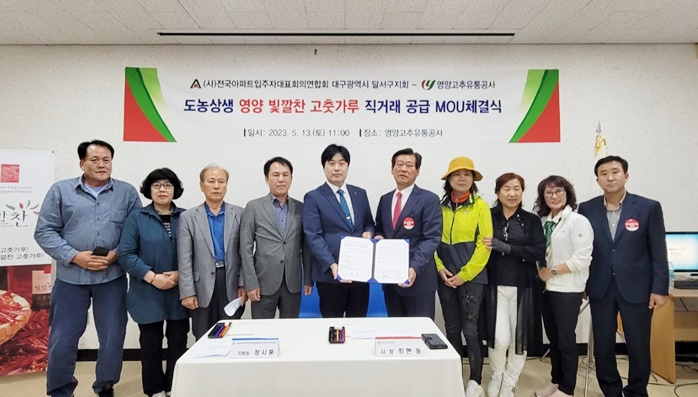 [½Ã»çÄÚ¸®¾ÆÀú³Î=±è¿¬ÇÐ ±âÀÚ] ¿µ¾ç°íÃßÀ¯Åë°ø»ç(»çÀå ÃÖÇöµ¿)´Â 13ÀÏ (»ç)Àü±¹¾ÆÆÄÆ®ÀÔÁÖÀÚ´ëǥȸÀÇ¿¬ÇÕȸ ´ë±¸´Þ¼±¸Áöȸ(ÁöȸÀå Àå½ÃÈÆ, ÀÌÇÏ (»ç)Àü¾Æ¿¬´Þ¼±¸Áöȸ)¿Í 'ºû±òÂù °íÃå°¡·ç Á÷°Å·¡ °ø±Þ' MOU ¾÷¹« Çù¾àÀ» ü°áÇß´Ù.
