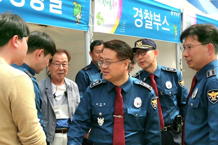[½Ã»çÄÚ¸®¾ÆÀú³Î=±è¿¬ÇÐ ±âÀÚ] ÃÖÁÖ¿ø °æºÏ°æÂûûÀåÀº 12ÀÏ ¿µ¾ç »ê³ª¹° ÃàÁ¦ ÇöÀåÀ» ã¾Æ ÀÎÆÄ °ü¸® ¹× ¾ÈÀü»ç°í ¿¹¹æ Á¶Ä¡ µîÀ» Á¡°ËÇϰí, “¾î¸£½Åµé²²¼ ¸¹ÀÌ Âü¼®ÇÏ´Â ÃàÁ¦ÀÌ´Ï ¸¸Å ´õ ¼¼½ÉÇÏ°í ¾ÈÀüÇÏ°Ô °ü¸®ÇÏÀÚ”°í °Á¶Çß´Ù.