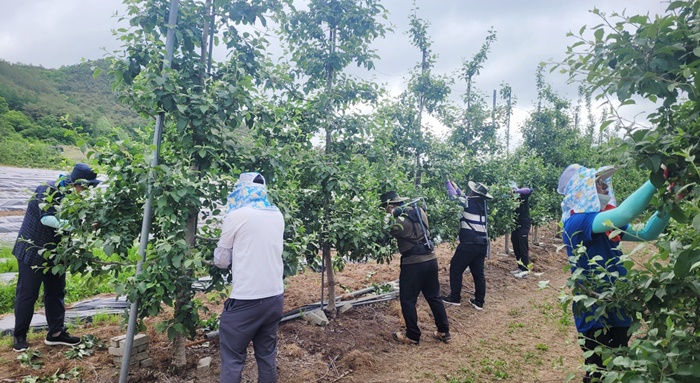 À̳¯ ºÀ»ç¿¡ Âü¿©ÇÑ Á÷¿ø 18¸íÀº Àå¾Ö µîÀ¸·Î ÀϼÕÀÌ ºÎÁ·ÇÑ ³ó°¡¸¦ À§ÇØ »ç°ú Àû°ú ÀÛ¾÷¿¡ ±¸½½¶¡À» Èê·È´Ù.