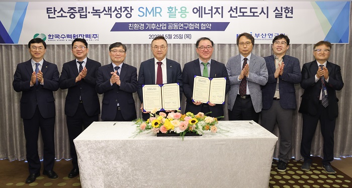 [½Ã»çÄÚ¸®¾ÆÀú³Î=°æºÏÃëÀ纻ºÎ] Çѱ¹¼ö·Â¿øÀÚ·Â(»çÀå ȲÁÖÈ£, ÀÌÇÏ ÇѼö¿ø)ÀÌ 25ÀÏ ¿þ½ºÆ¾Á¶¼±ºÎ»êÈ£ÅÚ¿¡¼ ºÎ»ê¿¬±¸¿ø(¿øÀå ½ÅÇö¼®)°ú ‘SMR Ȱ¿ë ź¼ÒÁ߸³µµ½Ã ±¸ÃàÀ» À§ÇÑ °øµ¿¿¬±¸Çù·Â Çù¾à’À» ü°áÇß´Ù.