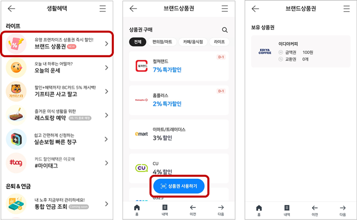 ÀÌ¿ë ¹æ¹ýÀº BNK°æ³²ÀºÇà ¸ð¹ÙÀϹðÅ·¾Û(App)¿¡ Á¢¼ÓÇØ ¸ÞÀΠȸé ÇÏ´Ü ‘»ýȰÇýÅÃ’ ¸Þ´º¿¡¼ ‘ºê·£µå»óǰ±Ç’À» Ŭ¸¯ÇÏ¸é µÈ´Ù.