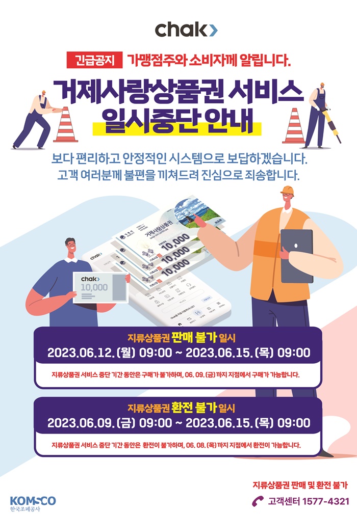 [½Ã»çÄÚ¸®¾ÆÀú³Î=Á¤Á¾¹Î ¼±ÀÓ±âÀÚ] °ÅÁ¦½Ã´Â Çѱ¹Á¶Æó°ø»ç ÅëÇÕ°ü¸®½Ã½ºÅÛÀÇ °³Æí¿¡ µû¶ó 'Áö·ù °ÅÁ¦»ç¶û»ç¶û»óǰ±Ç' ¼ºñ½º¸¦ 6¿ù 9ÀÏ(¿ÀÀü 9½Ã)ºÎÅÍ 6¿ù 15ÀÏ(¿ÀÀü 9½Ã)±îÁö ÀϽÃÁß´ÜÇÑ´Ù°í ¹àÇû´Ù.