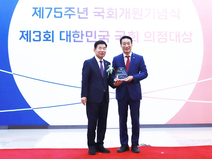 ¼ ÀÇ¿øÀº “±¹È¸ °³¿ø 75ÁÖ³â Çà»ç¿¡¼ '´ëÇѹα¹ ±¹È¸ ÀÇÁ¤´ë»ó'À̶ó´Â ¶æ±íÀº »óÀ» ¼ö»óÇÏ°Ô µÇ¾î ±â»Ú¸é¼µµ ¾î±ú°¡ ¹«°Ì´Ù”¸ç “±¹°¡¹ßÀüÀ» À§ÇØ Çå½ÅÇÏ±æ ¹Ù¶ó´Â ±¹¹ÎÀÇ ÁؾöÇÑ ¸í·ÉÀ¸·Î ¿©±â°í, Ç×»ó ³·Àº ÀÚ¼¼·Î ±¹¹ÎÀ» ¼¶±â´Â ÀÇÁ¤È°µ¿¿¡ ÃÖ¼±À» ´ÙÇÒ °Í”À̶ó°í ¸»Çß´Ù.