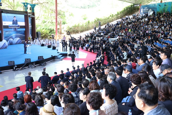 ‘Çõ½Å ÇØ¾ç»ê¾÷, µµ¾à ÇØ¾ç°æÁ¦, ÇÔ²² ¶Ù´Â ´ëÇѹα¹’À̶ó´Â ÁÖÁ¦·Î ¿¸° À̹ø ±â³ä½Ä¿¡´Â Á¶½Âȯ ÇØ¾ç¼ö»êºÎÀå°ü, ÀÌö¿ì °æºÏµµÁö»ç, ÁÖ³«¿µ °æÁÖ½ÃÀå, ³²ÇÑ±Ç ¿ï¸ª±º¼ö, ÀÌö¿ì °æÁÖ½ÃÀÇÀåÀ» ºñ·ÔÇØ ±¹È¸ÀÇ¿ø, µµ‧½ÃÀÇ¿ø ¹× °ü°èÀÚ µî 1500¿© ¸íÀÌ Âü¼®Çß´Ù.
