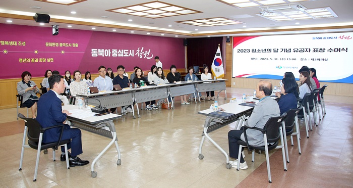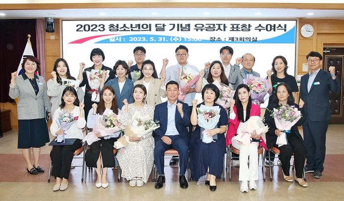 [½Ã»çÄÚ¸®¾ÆÀú³Î=Á¤Á¾¹Î ¼±ÀÓ±âÀÚ] â¿øÆ¯·Ê½Ã(½ÃÀå È«³²Ç¥)´Â 31ÀÏ 2023³â û¼Ò³âÀÇ ´Þ ±â³ä ¸ð¹üû¼Ò³â ¹× À¯°øÀÚ¿¡°Ô ǥâÀåÀ» ¼ö¿©Çß´Ù.