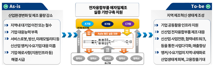 ¼ºñ½º·Îº¿ »ý»ê±â¾÷, ÀüÀÚÀ¶ÇÕºÎǰ Á¦Á¶±â¾÷, »ê¾÷ ¾÷Á¾Àüȯ ±â¾÷, ºÎǰ °³¹ß ¹× ³³Ç° Èñ¸Á ±â¾÷À» ´ë»óÀ¸·Î ¡â¼ö¿ä¹ß±¼·BM(ºñÁî´Ï½º ¸ðµ¨)±âȹ ¡â±â¼ú°³¹ß ¹× ½ÃÁ¦Ç° Á¦ÀÛÁö¿ø ¡â°ø±Þ±â¾÷ ¹ß±¼·¸ÅĪ ¡â¸¶ÄÉÆÃ·¾ç»ê Áö¿ø µî ¿ø½ºÅé ±â¾÷Áö¿øÀ» À§ÇÑ À°¼ºÃ¼°è ¸¶·Ã ¡â¼ö¿ä±â¾÷-ÀüÀÚÀ¶ÇÕºÎǰ±â¾÷-Á¦Á¶ ±â¾÷ °£ Çù¾÷³×Æ®¿öÅ© ¿î¿µ µîÀ» ÅëÇØ ÀüÀÚÀ¶ÇÕºÎǰ ¹ë·ùüÀÎ(Value Chain)À» Çü¼ºÇÒ °èȹÀÌ´Ù.