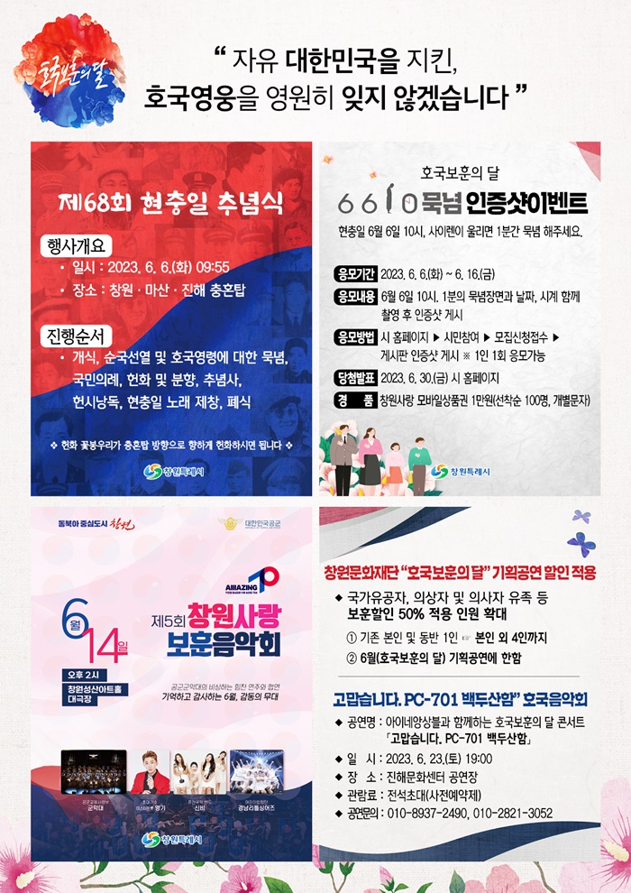 6ÀÏ ÇöÃæÀÏ¿¡´Â â¿øÃæÈ¥Å¾, ¸¶»êÃæÈ¥Å¾, ÁøÇØÃæÈ¥Å¾¿¡¼ ¼ø±¹¼±¿°ú È£±¹¿µ·ÉÀÇ ¾Ö±¹Á¤½ÅÀ» ±â¸®±â À§ÇÑ Á¦68ȸ ÇöÃæÀÏ Ãß³ä½ÄÀ» °ÅÇàÇÑ´Ù.