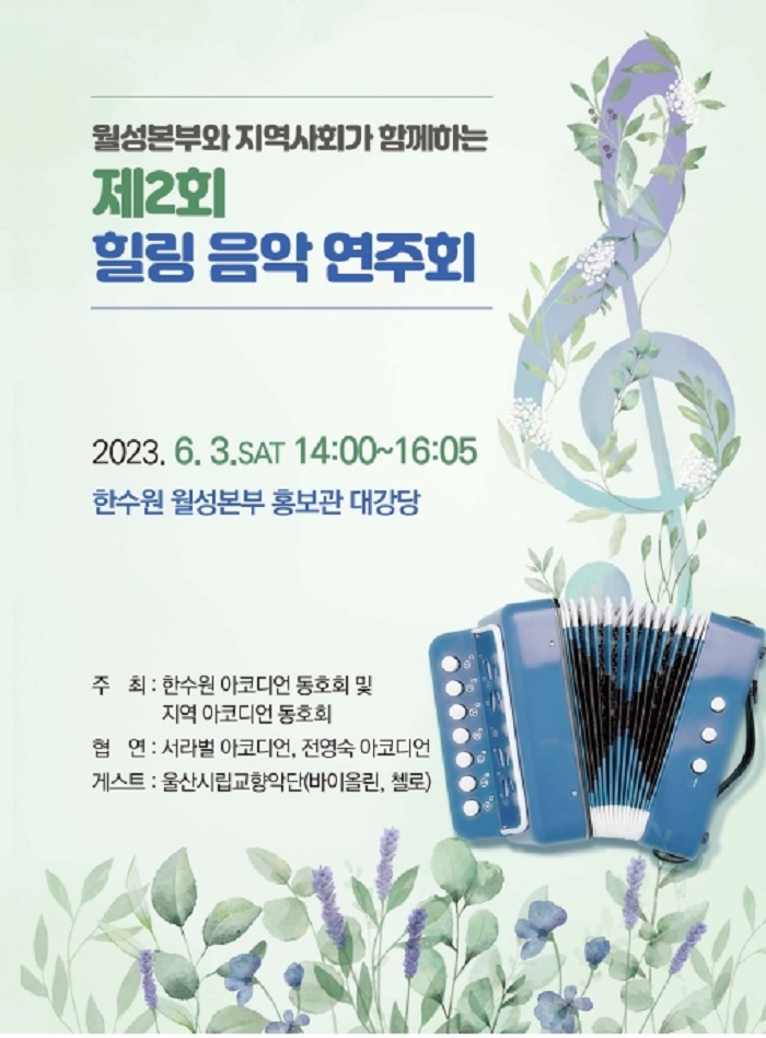 À۳⿡ ÀÌ¾î ¿ÃÇØ 2ȸ° ½ÃÇàµÇ´Â À̹ø ¿¬ÁÖȸ´Â ÇѼö¿ø ¾ÆÄÚµð¾ð µ¿È£È¸(¿ù¼ºº»ºÎ ¼¥¾ØÇ÷§, º»»ç ¾ÆÄÚÇѼö) ¹× Áö¿ª ¾ÆÄÚµð¾ð µ¿È£È¸(¼¶ó¹ú ¾ÆÄÚµð¾ð, Àü¿µ¼÷ ¾ÆÄÚµð¾ð)°¡ ÁÖÃÖÇϸç, ´çÀÏ ¿ù¼ºº»ºÎ È«º¸°üÀ» ã´Â ¹æ¹®°´Àº ´©±¸³ª °ü¶÷ÇÒ ¼ö ÀÖ´Ù.