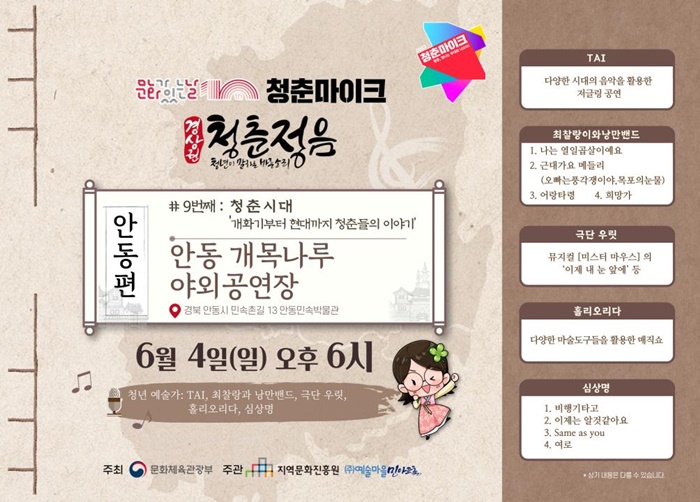 ¡¸2023 ¹®È°¡ ÀÖ´Â ³¯¡¹<ûÃḶÀÌÅ©> °æ»ó±Ç »ç¾÷Àº ¹®È°¡ ÀÖ´Â ³¯ ÁÖ°£¿¡ °æ»óÁö¿ª Àü¿ª(´ë±¸, ºÎ»ê, ¿ï»ê, °æºÏ, °æ³²)¿¡¼ ¿¸± ¿¹Á¤À¸·Î °æ»ó±Ç û³â¿¹¼ú°¡µéÀÌ ¹®È¿¹¼úÀÌ ÇÊ¿äÇÑ °÷À» ã¾Æ°¡ ±×µ¿¾È Äڷγª19·Î ÁöÃÄÀÖ´ø ½Ã¹Îµé¿¡°Ô ¸ÚÁø °ø¿¬À¸·Î Èú¸µÀÇ ½Ã°£À» Á¦°øÇÑ´Ù.