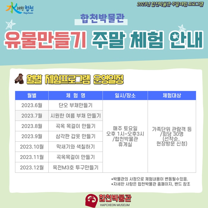 ÁÖ¸» üÇèÇÁ·Î±×·¥Àº 1°³¿ù ´ÜÀ§º°·Î ¿î¿µµÇ¸ç ¡â6¿ù ´Ü¿ÀºÎä ¸¸µé±â ¡â7¿ù ½Ã¿øÇÑ ¿©¸§ ºÎ丸µé±â ¡â8¿ù °î¿Á ¸ñ°ÉÀÌ ¸¸µé±â ¡â9¿ù »ï°¢ÆÇ °©¿Ê ¸¸µé±â ¡â10¿ù ¸·»õ±â¿Í »öÄ¥Çϱ⠡â11¿ù °î¿Á ¸ñ°ÉÀÌ ¸¸µé±â ¡â12¿ù ¿ÁÀü M3È£ ÃâÅä Åõ±¸¸¸µé±â·Î ±¸¼ºµÈ´Ù.