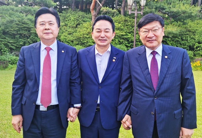 | ±¹¹ÎÀÇÈû °±âÀ± ÀÇ¿øÀÌ Á¤Á¡½Ä °æ³²µµ´ç À§¿øÀå°ú ¿øÈñ·æ ±¹Åä±³ÅëºÎÀå°üÀ» ¸¸³ª â¿øÆ¯·Ê½Ã ±×¸°º§Æ® Àü¸éÇØÁ¦¸¦ °·ÂÈ÷ ¿ä±¸Çß´Ù. |