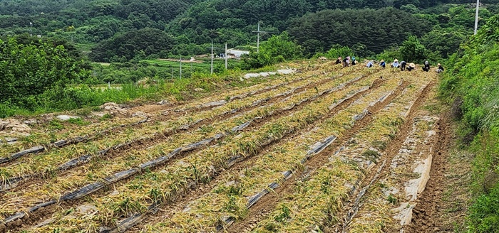 5ÀÏ ±º ¹Î¿øÁöÀû°ú Á÷¿ø 12¸íÀº ¾ÆÄ§ ÀÏÂïºÎÅÍ ¹¦»ê¸éÀÇ ¸¶´Ã ³ó°¡¸¦ ¹æ¹®ÇØ ¸¶´Ã ¼öÈ®¿¡ ±¸½½¶¡À» Èê·È´Ù.