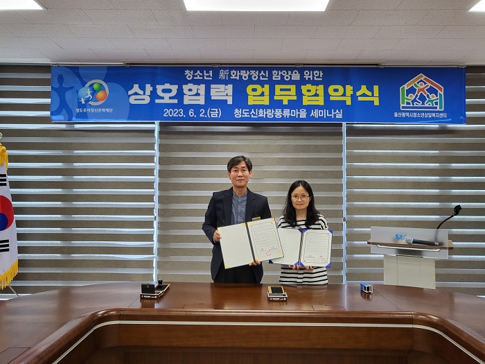 [½Ã»çÄÚ¸®¾ÆÀú³Î=°æºÏÃëÀ纻ºÎ] ûµµ¿ì¸®Á¤½Å¹®ÈÀç´Ü(ÀÌ»çÀå ±èÇϼö ûµµ±º¼ö)Àº Áö³ 2ÀÏ Ã»µµ½Åȶûdz·ù¸¶À» ¼¼¹Ì³ª½Ç¿¡¼ ‘¿ï»ê±¤¿ª½Ãû¼Ò³â»ó´ãº¹Áö¼¾ÅÍ’¿Í ¾÷¹«Çù¾àÀ» ü°áÇß´Ù.
