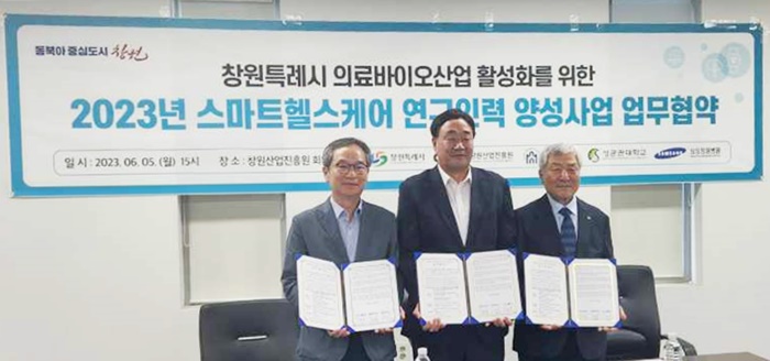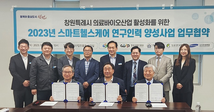 [½Ã»çÄÚ¸®¾ÆÀú³Î=Á¤Á¾¹Î ¼±ÀÓ±âÀÚ] â¿øÆ¯·Ê½Ã(½ÃÀå È«³²Ç¥)¿Í â¿ø»ê¾÷ÁøÈï¿ø(¿øÀå À嵿È)Àº 2023³â ½º¸¶Æ®ÇコÄÉ¾î ¿¬±¸Àη ¾ç¼º»ç¾÷ ÃßÁøÀ» À§ÇØ, 5ÀÏ ¸¶»ê´ëÇб³(ÃÑÀå ÀÌÇÐÁø), »ï¼ºÃ¢¿øº´¿ø(¿øÀå °í±¤Ã¶)°ú ÇÔ²² ‘½º¸¶Æ®ÇコÄÉ¾î ¿¬±¸Àη ¾ç¼º»ç¾÷’ ¾÷¹«Çù¾à½ÄÀ» °³ÃÖÇß´Ù°í ¹àÇû´Ù.
