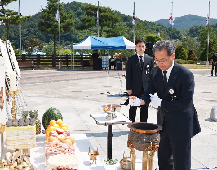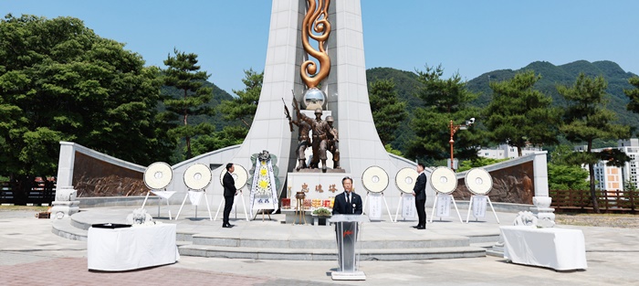 À̹ø Ãß³ä½ÄÀº‘À§´ëÇÑ Çå½Å, ¿µ¿øÈ÷ °¡½¿¿¡’¶ó´Â ÁÖÁ¦·Î ´ëÇѹα¹ÀÇ ¿À´ÃÀ» ÀÖ°Ô ÇÑ ¼ø±¹¼±¿°ú È£±¹¿µ·ÉÀÇ Èñ»ý¿¡ ´ëÇØ Ã߸ðÇÏ°í ¾Ö±¹Á¤½ÅÀ» ¼±¾çÇϱâ À§ÇØ ¸¶·ÃµÆÀ¸¸ç, ¿ÀµµÃ¢ ¿µ¾ç±º¼ö, ±è¼®Çö ¿µ¾ç±ºÀÇȸÀÇÀå µî ÁÖ¿ä±â°üÀå°ú º¸ÈÆ´Üü ¹× À¯°¡Á·, Çлý´ëÇ¥ µî 400¿©¸íÀÌ Âü¼®ÇØ Ã߸ðÀÇ ½Ã°£À» °¡Á³´Ù.