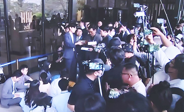 ¼Û Àü ´ëÇ¥´Â Ãâ¼®ÀÌ ¹«»êµÇÀÚ Ã»»ç ·Îºñ ¾Õ¿¡¼ ¾à 20ºÐ°£ ±âÀÚȸ°ßÀ» ¿°í ÁغñÇØ¿Â A4¿ëÁö 10Àå ºÐ·®ÀÇ ÀÔÀå¹®À» ÅëÇØ °ËÂû ¼ö»çÀÇ ºÎ´çÇÔÀ» Ç׺¯Çß´Ù.
