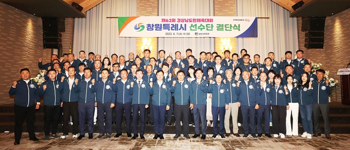 | â¿ø½ÃüÀ°È¸´Â 7ÀÏ ¿ÀÀü 11½Ã Èú½ºÄ«ÀÌÄÁº¥¼Ç¿¡¼ Á¦62ȸ °æ»ó³²µµ¹ÎüÀ°´ëȸ¿¡ ÃâÀüÇϴ â¿øÆ¯·Ê½Ã ¼±¼ö´Ü °á´Ü½ÄÀ» °¡Á³´Ù. »çÁøÀº Âü¼®ÀÚµéÀÌ ÇʽÂÀ» ´ÙÁüÇÏ¸ç ±â³äÃÔ¿µÀ» ÇÏ´Â ¸ð½À. |