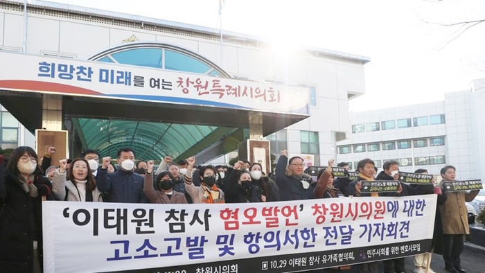 | ÀÌÅ¿ø Âü»ç À¯°¡Á·ÇùÀÇȸ¿Í ¹ÎÁÖ»çȸ¸¦ À§ÇÑ º¯È£»ç¸ðÀÓÀÌ Áö³ÇØ 12¿ù 15ÀÏ Ã¢¿ø½ÃÀÇȸ ÀÔ±¸¿¡¼ 'ÀÌÅ¿ø Âü»ç ¸·¸» ±è¹Ì³ª ½ÃÀÇ¿ø ±Ôź ±âÀÚȸ°ß'À» ¿°í ÀÖ´Ù. |