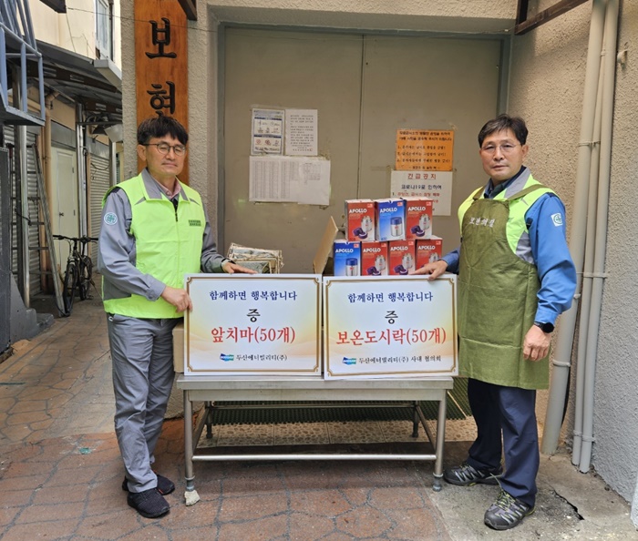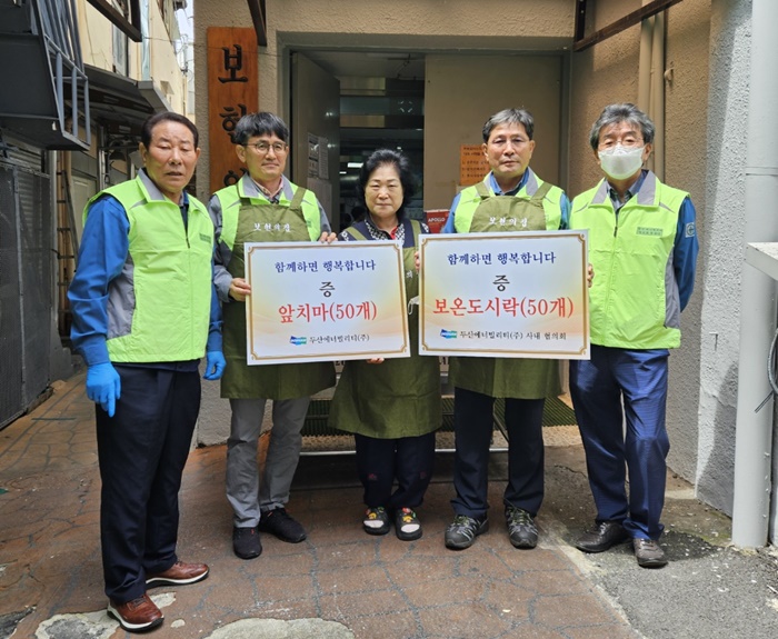 [½Ã»çÄÚ¸®¾ÆÀú³Î=Á¤Á¾¹Î ¼±ÀÓ±âÀÚ] µÎ»ê¿¡³Êºô¸®Æ¼ »ç³»ÇùÀÇȸ(ȸÀå ¹ÚºÀ±Ô, Çù·Â»ç ´ëÇ¥ 30¿©¸í)´Â 8ÀÏ ¸¶»ê Á¤¹ý»ç ‘º¸ÇöÀÇ Áý’À» ¹æ¹®ÇØ ¹°Ç° Àü´Þ, ±Þ½Ä ºÀ»ç, µµ½Ã¶ô ¹è´Þ Ȱµ¿À» ÆîÃÆ´Ù.