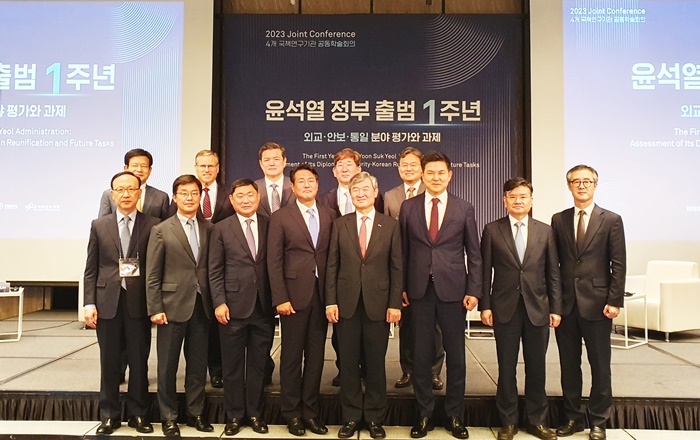 [½Ã»çÄÚ¸®¾ÆÀú³Î=Á¤Á¾¹Î ¼±ÀÓ±âÀÚ] ±èÅÂÈ£ ±¹È¸ ¿Ü±³ÅëÀÏÀ§¿øÀåÀº À±¼®¿ Á¤ºÎ Ãâ¹ü 1³âÀ» ±â³äÇØ 4°³ ±¹Ã¥¿¬±¸±â°üÀÌ ÁÖÃÖÇÑ °øµ¿ ÇмúȸÀÇ¿¡ Âü¼®ÇØ ¿Ü±³¾Èº¸ÅëÀÏ ºÐ¾ßÀÇ ¼º°ú¸¦ µÞ¹ÞħÇÑ Àü¹®°¡µéÀ» °Ý·ÁÇß´Ù.