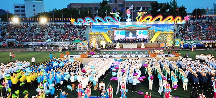 'Á¦48ȸ °æ³²µµ¹ÎüÀ°´ëȸ' °³ÃÖ ½ÃÀÎ ÁøÁֽð¡ °ø¼³¿îµ¿Àå¿¡¼ ¼±¼ö¿Í ÀÓ¿øÁø, °ø¹«¿ø, ½Ã¹Î µî 2¸¸¿©¸íÀÌ ¸ðÀÎ °¡¿îµ¥ °³¸·½ÄÀ» ¿°í ÀÖ´Ù. »çÁøÀº ȯ¿µ¸®¼Á¼ÇÀå ¸ð½À.