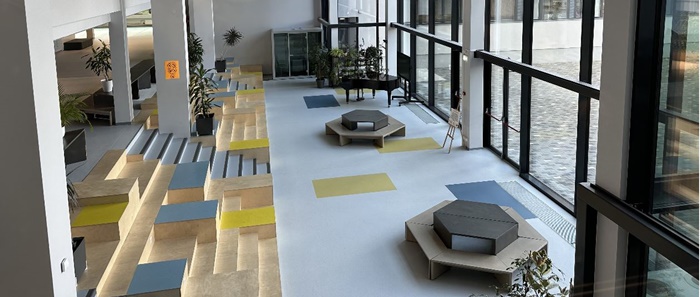 ¿¡½ºÅä´Ï¾ÆÀÇ Å»¸° »è»ç ±è³ªÁö¿ò(Tallinn Saksa Gymnasium)Àº °è´ÜÀ» ¹«´ë °´¼®À¸·Î Ȱ¿ëÇÏ¿© ¼Ò±Ô¸ð °ø¿¬ÀÌ °¡´ÉÇϸç, »ç±³, ¼Ò¸ðÀÓ ¹× °³ÀÎ ÇнÀ Àå¼Ò·Î Ȱ¿ëµÈ´Ù.