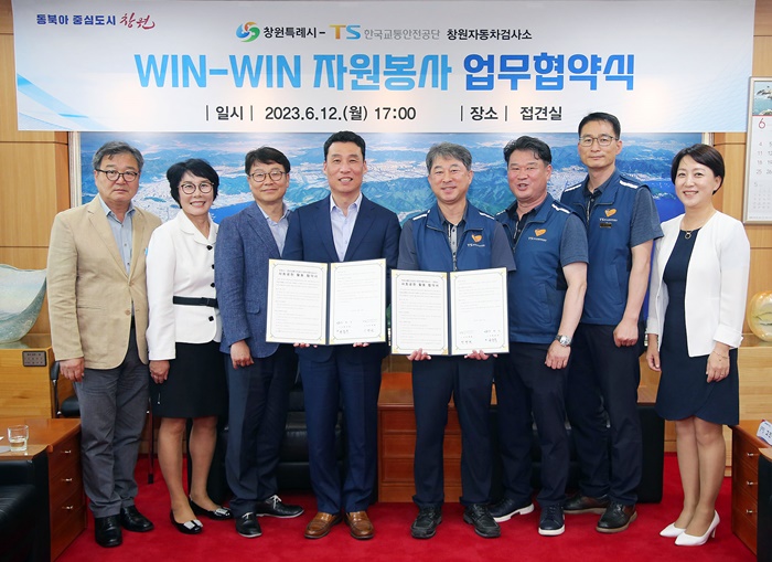 [½Ã»çÄÚ¸®¾ÆÀú³Î=Á¤Á¾¹Î ¼±ÀÓ±âÀÚ] â¿øÆ¯·Ê½Ã(½ÃÀå È«³²Ç¥)´Â 12ÀÏ ¿ÀÈÄ 5½Ã Á¢°ß½Ç¿¡¼ Çѱ¹±³Åë¾ÈÀü°ø´Ü °æ³²Áö¿ªº»ºÎ »êÇÏ Ã¢¿øÀÚµ¿Â÷°Ë»ç¼Ò(¼ÒÀå ¾Èº´È¯)¿Í ÀÚ¿øºÀ»ç Ȱ¼ºÈ¿Í »çȸ°øÇåȰµ¿À» À§ÇÑ ‘WIN-WIN ÀÚ¿øºÀ»ç ¾÷¹«Çù¾à’À» ü°áÇß´Ù.