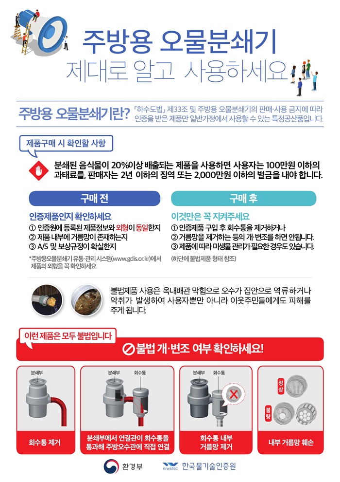 ÇÑÆí ÁÖ¹æ¿ë ¿À¹°ºÐ¼â±âÀÇ ¿Ã¹Ù¸¥ »ç¿ë ¹æ¹ýÀº À½½Ä¹° Â±â 80% ÀÌ»óÀº ȸ¼öÅëÀ¸·Î ¹Þ¾Æ À½½Ä¹° Á¾·®Á¦ ºÀÅõ·Î ¹èÃâÇϰí 20% ¹Ì¸¸ÀÇ À½½Ä¹° Â±â¸¸ Çϼö·Î ¹èÃâÇÏ´Â °ÍÀÌ´Ù. ¶ÇÇÑ ÁÖ¹æ¿ë ¿À¹°ºÐ¼â±â´Â ¡¸Çϼöµµ¹ý¡¹Á¦33Á¶¿¡ µû¶ó ȯ°æºÎ Àå°üÀÇ ½ÂÀÎÀ» ¹ÞÀº Á¦Ç°¸¸ »ç¿ëÇÒ ¼ö ÀÖ´Ù.