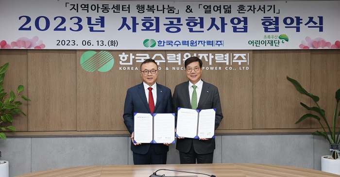 [½Ã»çÄÚ¸®¾ÆÀú³Î=°æºÏÃëÀ纻ºÎ] Çѱ¹¼ö·Â¿øÀÚ·Â(»çÀå ȲÁÖÈ£, ÀÌÇÏ ÇѼö¿ø)°ú ¾Æµ¿ ¿ËÈ£ ´ëÇ¥±â°üÀÎ ÃÊ·Ï¿ì»ê¾î¸°ÀÌÀç´Ü(ȸÀå Ȳ¿µ±â)ÀÌ 13ÀÏ ¼¿ï Áß±¸ ÇѼö¿ø ¹æ»ç¼±º¸°Ç¿ø¿¡¼ ¹Ì·¡¼¼´ë Áö¿øÀ» À§ÇÑ ‘2023³â »çȸ°øÇå»ç¾÷ Çù¾à½Ä’À» °³ÃÖÇß´Ù.