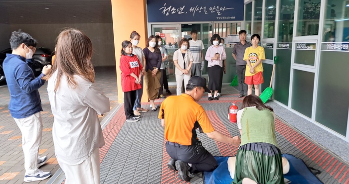 [½Ã»çÄÚ¸®¾ÆÀú³Î=±è¿¬ÇÐ ±âÀÚ] ¿µ¾ç±º(±º¼ö ¿ÀµµÃ¢)Àº 14ÀÏ ¿µ¾ç±ºÃ»¼Ò³â¼ö·Ã°ü¿¡¼ Áֹκ¹Áö°ú µå¸²½ºÅ¸Æ®ÆÀ, û¼Ò³â¼ö·Ã°ü ¹× û¼Ò³â»ó´ãº¹Áö¼¾ÅÍ Á÷¿ø, ¿µ¾ç119¾ÈÀü¼¾ÅÍ ´ë¿ø 20¿©¸íÀÌ Âü¿©ÇÑ °¡¿îµ¥ ÇÕµ¿¼Ò¹æÈÆ·ÃÀ» ½Ç½ÃÇß´Ù.