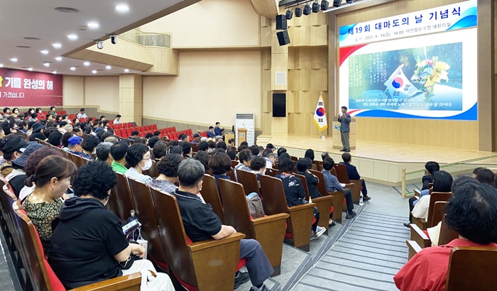 ƯÈ÷, 2ºÎ Çà»ç·Î ‘´ë¸¶µµ¿¡ ´ëÇÑ ¿ª»çÀû Æò°¡¿Í ¿ì¸®ÀÇ ÀÚ¼¼’¸¦ ÁÖÁ¦·Î ´ë¸¶µµÀÇ ³¯ ±â³ä»ç¾÷ ÃßÁøÀ§¿øÀÎ ¹ÚÁßö À§¿øÀåÀÇ ¿ª»çƯ°ÀÌ ÁøÇàµÅ Âü¼®ÇÑ ½Ã¹Îµé·ÎºÎÅÍ Å« È£ÀÀÀ» ¾ò¾ú´Ù.