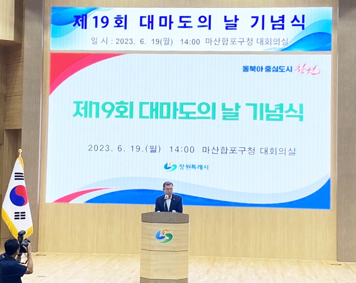 | â¿øÆ¯·Ê½Ã´Â 19ÀÏ ¿ÀÈÄ 2½Ã ¸¶»êÇÕÆ÷±¸Ã» ´ëȸÀǽǿ¡¼ Á¦19ȸ ´ë¸¶µµÀÇ ³¯ ±â³ä½ÄÀ» °³ÃÖÇß´Ù. »çÁøÀº ¹ÚÁßö ´ë¸¶µµÀÇ ³¯ ±â³ä»ç¾÷ ÃßÁøÀ§¿øÀåÀÌ ¿ª»çƯ°À» Çϰí ÀÖ´Ù. |