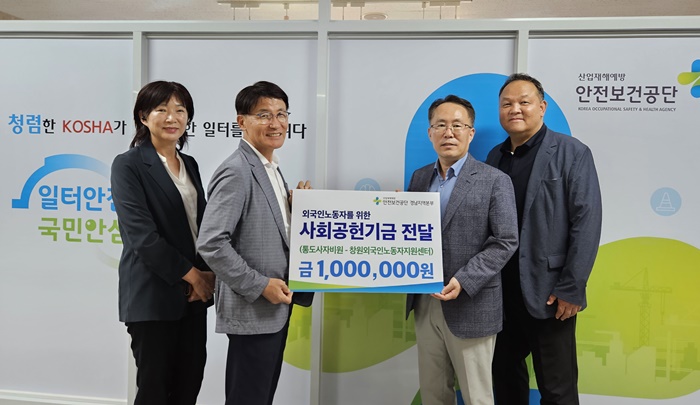 | Çѱ¹»ê¾÷¾ÈÀüº¸°Ç°ø´Ü ¾È¿øÈ¯ °æ³²Áö¿ªº»ºÎÀåÀÌ Ã¢¿ø¼¾ÅÍ¿¡ ¿Ü±¹Àξî¿ï¸²¸¶´ç Çà»ç µî ¿Ü±¹ÀÎ ±Ù·ÎÀÚ »ê¾÷ÀçÇØ ¿¹¹æ¿¡ ÇÊ¿äÇÑ ÈÄ¿ø±Ý 100¸¸¿øÀ» Àü´ÞÇϰí ÀÖ´Ù. |