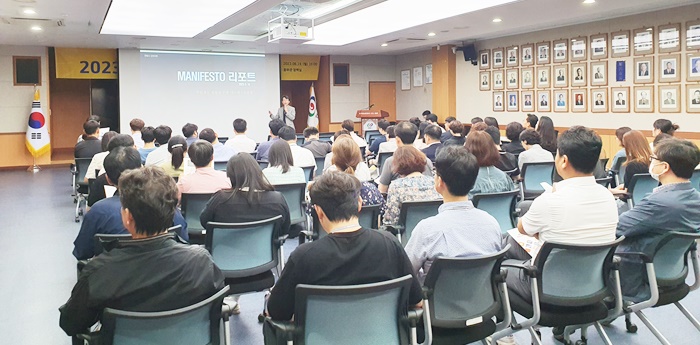 ½Ã´Â Áö³ 19ÀÏ ¾Èµ¿½Ãû¿¡¼ À̱¤Àç Çѱ¹¸Å´ÏÆä½ºÅä½Çõº»ºÎ »ç¹«ÃÑÀåÀ» °»ç·Î ÃʺùÇØ '2023 ¸Å´ÏÆä½ºÅä ½Çõ ±³À°'À» °³ÃÖÇß´Ù.