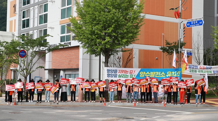 À̳¯ ¾ç¼ö¹ßÀü¼Ò À¯Ä¡È«º¸´Â ¿µ¾ç ³²¼ºÀÇ¿ë¼Ò¹æ´ë ¿¬ÇÕȸ ¾öÁÖ±âȸÀå°ú ¿©¼ºÀÇ¿ë¼Ò¹æ´ë ¿¬ÇÕȸ ±èȼøÈ¸ÀåÀ» Áß½ÉÀ¸·Î À¾․¸éÀÇ¿ë¼Ò¹æ´ëÀå°ú ´ë¿ø 100¿©¸íÀÌ Âü¼®ÇØ ¸ðµÎ°¡ ÇѸ¶À½À¸·Î ‘¾ç¼ö¹ßÀü¼Ò À¯Ä¡, ¿µ¾çÀÌ µüÀÌ´Ù’¸¦ ¿ÜÄ¡¸ç ¾ç¼ö¹ßÀü¼Ò À¯Ä¡¸¦ À§ÇÑ °£ÀýÇÑ ¹Ù¶÷À» Ç¥ÃâÇß´Ù.