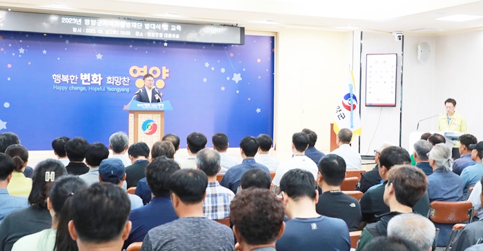 [½Ã»çÄÚ¸®¾ÆÀú³Î=±è¿¬ÇÐ ±âÀÚ] ¿µ¾ç±º(±º¼ö ¿ÀµµÃ¢)Àº 22ÀÏ ¿ÀÀü 10½ÃºÎÅÍ ¾à 1½Ã°£ 30ºÐ °¡·® '2023³â ¿µ¾ç±ºÁö¿ªÀÚÀ²¹æÀç´Ü ¹ß´ë½Ä ¹× ±³À°'À» ±ºÃ» ´ëȸÀÇ½Ç ¿¡¼ ½Ç½ÃÇß´Ù.