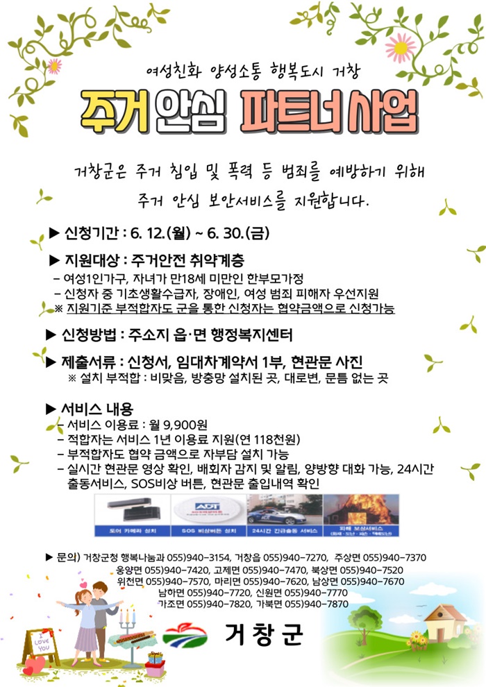 ÁÖ°Å¾È½É ÆÄÆ®³Ê »ç¾÷Àº ÁְŠħÀÔ ¹× Æø·Â µî ¹üÁ˸¦ ¿¹¹æÇϱâ À§ÇØ ÁְžÈÀü Ãë¾à°èÃþÀ» ´ë»óÀ¸·Î ÁÖ°Å¾È½É º¸¾È¼ºñ½º¸¦ Á¦°øÇØ ¾È½ÉÇÏ°í »ýȰÇÒ ¼ö ÀÖ´Â ¾ÈÀüÇÑ ÁÖ°Åȯ°æÀ» Á¶¼ºÇϱâ À§ÇØ ÃßÁøµÆ´Ù.