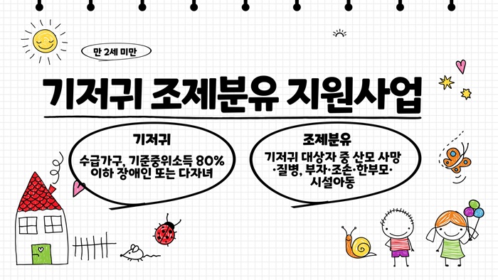 ±âÀú±Í Áö¿ø´ë»óÀº ¸¸ 2¼¼ ¹Ì¸¸ÀÇ ¿µ¾Æ¸¦ µÐ ±âÃÊ»ýȰº¸Àå¼ö±ÞÀÚ µî ¼ö±Þ°¡±¸ ¶Ç´Â ±âÁØÁßÀ§¼Òµæ 80% ÀÌÇÏ Àå¾ÖÀÎ °¡±¸¿Í ´ÙÀÚ³à(2ÀÎ ÀÌ»ó) °¡±¸·Î °Ç°º¸Çè·á º»Àκδã±Ý È®ÀÎÀ» ÅëÇØ ¼±Á¤µÈ´Ù.