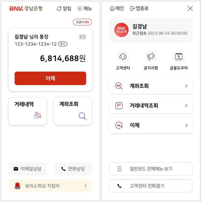 BNK°æ³²ÀºÇà ¸ð¹ÙÀϹðÅ· ¾Û ¸ÞÀÎȸéÀÇ ‘Å«±Û¾¾’ ¹öưÀ» ÅëÇØ ȸé Àüȯ ÈÄ ¼ºñ½º¸¦ ÀÌ¿ëÇÒ ¼ö ÀÖ´Ù.