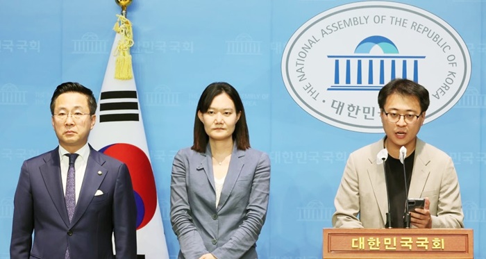 | ¹ÎÁÖ´ç Çõ½ÅÀ§¿øÈ¸ À±ÇüÁß·±è³²Èñ ´ëº¯ÀÎÀÌ 23ÀÏ ¿ÀÈÄ ±¹È¸ ¼ÒÅë°ü¿¡¼ Çõ½ÅÀ§ 2Â÷ ȸÀÇ °á°ú¸¦ ºê¸®ÇÎÇϰí ÀÖ´Ù. ¿ÞÂÊÀº ¹Ú¼ºÁØ ÀÇ¿ø. |