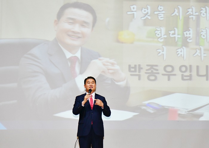¹ÚÁ¾¿ì ½ÃÀåÀº ÀÌ ³¯ °¿¬¿¡¼ Çлýµé¿¡°Ô °ÅÁ¦ÀÎÀ̶ó´Â Àںνɰú Æ÷ºÎ¸¦ °¡Áö°í ´Ù¾çÇÑ ¼±Åðú µµÀüÀ» ÇØº¼ °ÍÀ» °Á¶ÇÏ¸é¼ “¿ì¸® ¸ðµÎ°¡ °ÅÁ¦¿¡ »ì°í ÀÖ´Ù´Â ÀÚ±à½ÉÀ» °¡Áö°í ¾ÕÀ¸·Î ¾îµð¼ ¹«¾ùÀ» ÇÏ´ø ÈûÂ÷°Ô µµÀüÇÏ¸é¼ ´Þ·Á³ª°¡±æ ¹Ù¶õ´Ù”°í °Ý·ÁÇß´Ù.