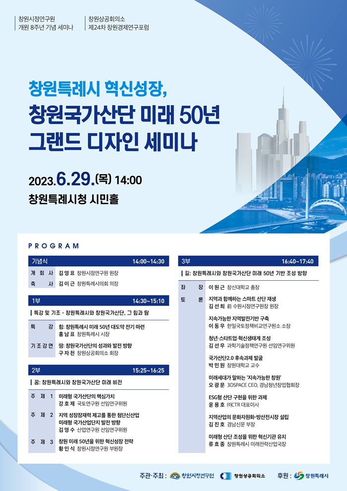 [½Ã»çÄÚ¸®¾ÆÀú³Î=Á¤Á¾¹Î ¼±ÀÓ±âÀÚ] â¿ø½ÃÁ¤¿¬±¸¿ø(¿øÀå ±è¿µÇ¥)°ú â¿ø»ó°øÈ¸ÀǼÒ(ȸÀå ±¸ÀÚõ)´Â ¿À´Â 29ÀÏ ¿ÀÈÄ 2½Ãâ¿øÆ¯·Ê½Ãû ½Ã¹ÎȦ¿¡¼ 'â¿øÆ¯·Ê½Ã Çõ½Å¼ºÀå, â¿ø±¹°¡»ê´Ü ¹Ì·¡50³â ±×·£µå µðÀÚÀÎ ¼¼¹Ì³ª'¸¦ °øµ¿ °³ÃÖÇÑ´Ù.