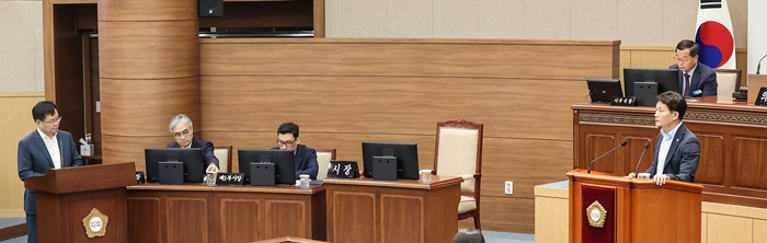 | â¿ø½ÃÀÇȸ ¹ÚÇØÁ¤ ÀÇ¿øÀÌ 23ÀÏ Á¦125ȸ Á¤·Êȸ 3Â÷ º»È¸ÀÇ¿¡¼ È«³²Ç¥ ½ÃÀå¿¡°Ô ½ÃÁ¤Áú¹®À» Çϰí ÀÖ´Ù. |