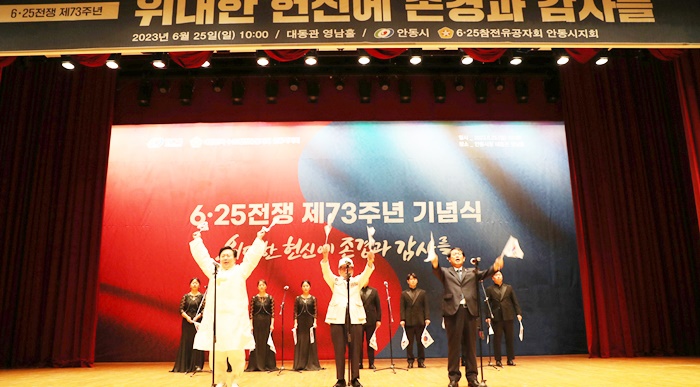 [½Ã»çÄÚ¸®¾ÆÀú³Î=±è¿¬ÇÐ ±âÀÚ] ¾Èµ¿½Ã´Â 6.25 ÀüÀïÀÇ ¿ª»çÀû ÀÇÀÇ¿Í ±³ÈÆÀ» µÇ»õ±â°í, ³ª¶ó¸¦ À§ÇØ Èñ»ýÇÑ ¼±¿À» ±â¸®¸ç ÂüÀüÀ¯°øÀÚ¿¡°Ô Á¸°æ°ú °¨»çÀÇ ¸¶À½À» ÀüÇϱâ À§ÇÑ '6.25ÀüÀï Á¦73Áֳ⠱â³ä½Ä'À» 25ÀÏ ¾Èµ¿½Ãû ´ëµ¿°ü ¿µ³²È¦¿¡¼ °³ÃÖÇß´Ù.