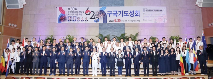 À̳¯ È«³²Ç¥ â¿øÆ¯·Ê½ÃÀå, ±è¿µ¼± ±¹È¸ÀÇ¿ø, ½ÃÀÇ¿ø µî ³»¿Üºó°ú Á¾±³ÀÎ, ½Ã¹Î µî 1,500¿© ¸íÀÌ Âü¼®ÇØ ÅëÀÏÀ» À§ÇÑ 6·25 ±¸±¹±âµµ¼ºÈ¸¸¦ ÃàÇÏÇß´Ù.