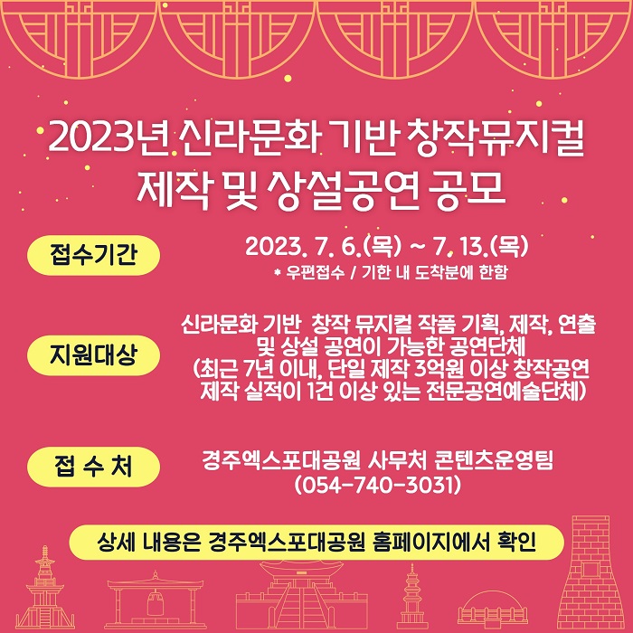 °ø°³¸ðÁý °ø°í´Â “¡º2023³â ½Å¶ó¹®È±â¹Ý âÀÛ¹ÂÁöÄà Á¦ÀÛ ¹× »ó¼³°ø¿¬¡» °ø¿¬ÄÜÅÙÃ÷ ¹× ´Üü °ø¸ð”¶ó´Â ¸íĪÀ¸·Î °æÁÖ¿¢½ºÆ÷´ë°ø¿ø ȨÆäÀÌÁö ¹× °æ»óºÏµµ ȨÆäÀÌÁö¿¡ °Ô½ÃµÇ¾î ÀÖ´Ù.