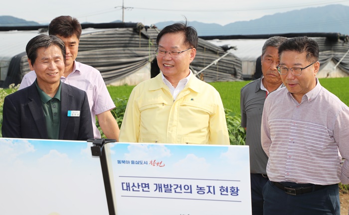 | È«³²Ç¥ â¿øÆ¯·Ê½ÃÀåÀº 28ÀÏ ¿ÀÈÄ ÀÇⱸ ´ë»ê¸é Çö¾È»ç¾÷ÀåÀ» ¹æ¹®ÇØ ÃßÁø »óȲÀ» Á¡°ËÇϰí Áֹεé°ú ÇöÀå¿¡¼ ¼ÒÅëÇÏ´Â ½Ã°£À» °¡Á³´Ù. |