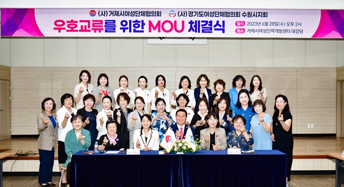 [½Ã»çÄÚ¸®¾ÆÀú³Î=Á¤Á¾¹Î ¼±ÀÓ±âÀÚ] (»ç)°ÅÁ¦½Ã¿©¼º´ÜüÇùÀÇȸ(ȸÀå ±è¹Ì¿Á)¿Í (»ç)¼ö¿ø½Ã¿©¼º´ÜüÇùÀÇȸ(ȸÀå ¼ÒÁø¼ø)°¡ Áö³ 28ÀÏ °ÅÁ¦¿©¼ºÀη°³¹ß¼¾ÅÍ ´ë°´ç¿¡¼ ¼·Î »ó»ý¹ßÀüÀ» À§ÇÑ ¿ìÈ£±³·ù Çù¾àÀ» ü°áÇß´Ù.