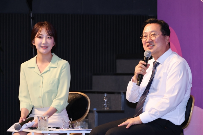 | <ÀÌÀå¿ì ½ÃÀåÀÌ ¹Î¼±8±â ÅäÅ©ÄܼƮ¿¡¼ ½Ã¹Î°ú ÇÔ²² Åä·ÐÇϰí ÀÖ´Ù> |