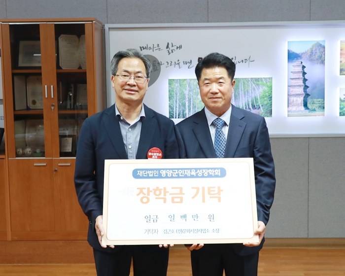 [½Ã»çÄÚ¸®¾ÆÀú³Î=±è¿¬ÇÐ ±âÀÚ] ±è±ÙÈ£ Àü ¹®È½Ã¼³»ç¾÷¼ÒÀåÀÌ Áö³ 26ÀÏ, 37³â°£ÀÇ °øÁ÷»ýȰÀ» ¸¶¹«¸®Çϸç Áö¿ª ³» ÇлýµéÀÇ µµÀü°ú ²ÞÀ» ÀÀ¿øÇϱâ À§ÇØ ¿µ¾ç±ºÀÎÀçÀ°¼ºÀåÇÐȸ¸¦ ¹æ¹®ÇØ ÀåÇÐ±Ý 100¸¸¿øÀ» ±âŹÇß´Ù.